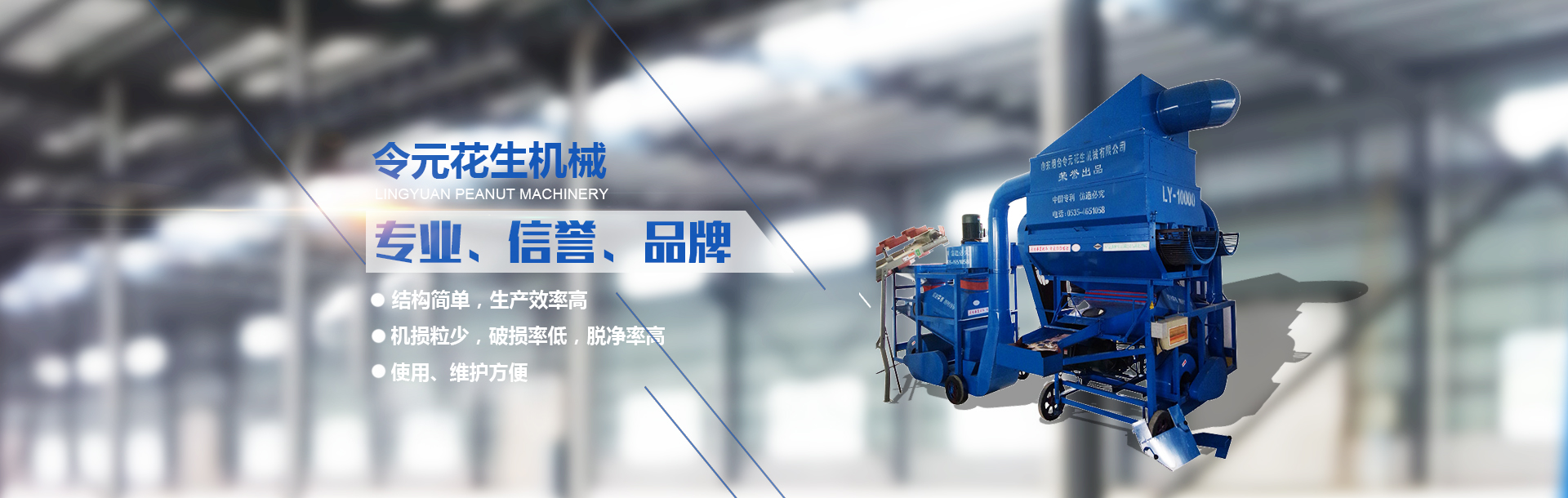 煙臺令元花生機械有限公司座落在養馬島南首,緊依煙威公路,距煙臺火車站、碼頭、機場均20公里,交通便利。公司技術力量雄厚,專業水平高,市場信譽度好。該機具有結構簡單,生產效率高,機損粒少,破損率低,脫凈率高,使用、維護方便等特點,可以加工任何品種的花生果。